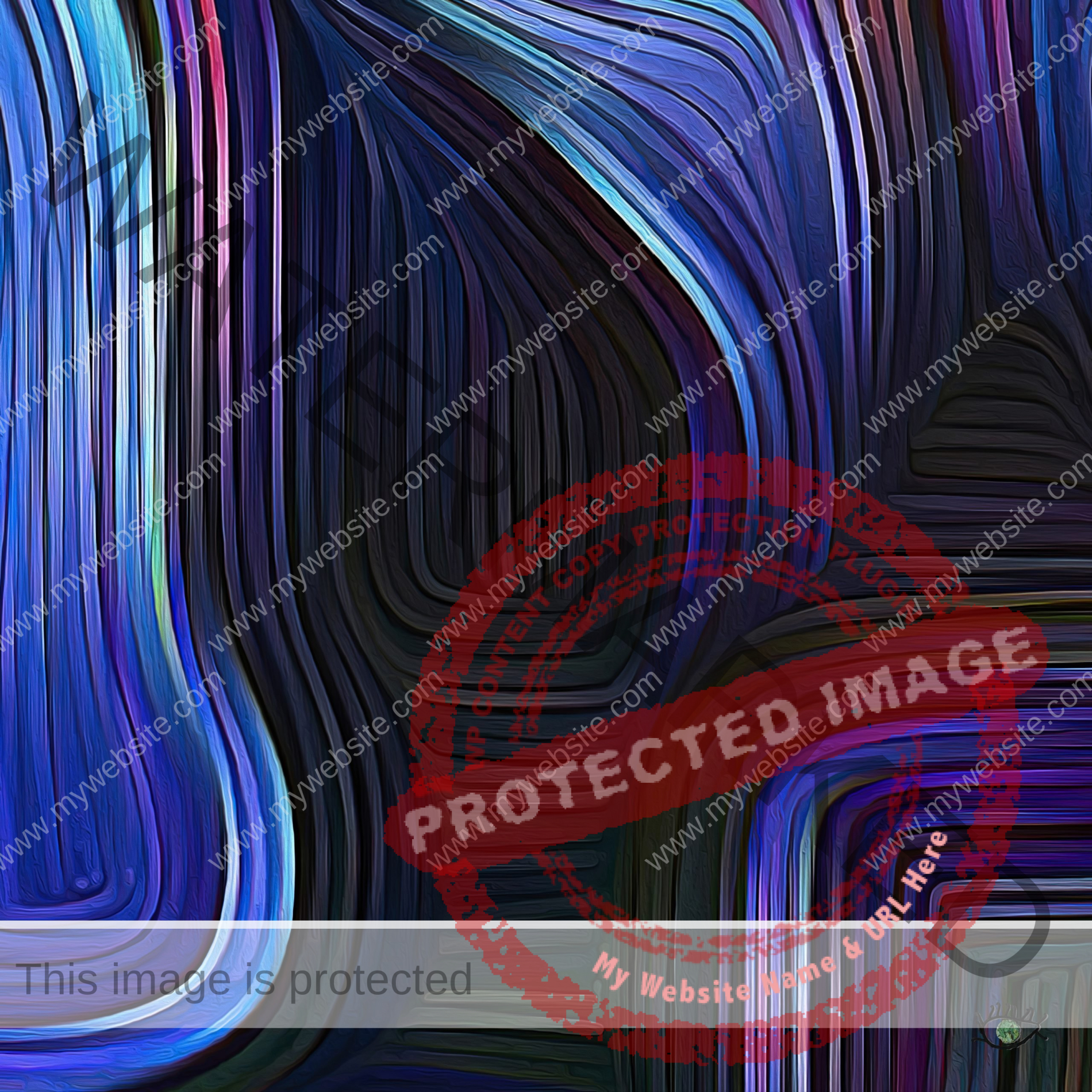 This serie is called SQUARED TEXTURED BLEU-VIOLET because it’s composed by 6 unique contemporary digital paintings with a 100 x 100 cm format. If you look closely this artwork, you will see that each one of the living lines that intertwine in this painting changes is color at least one time before ending.