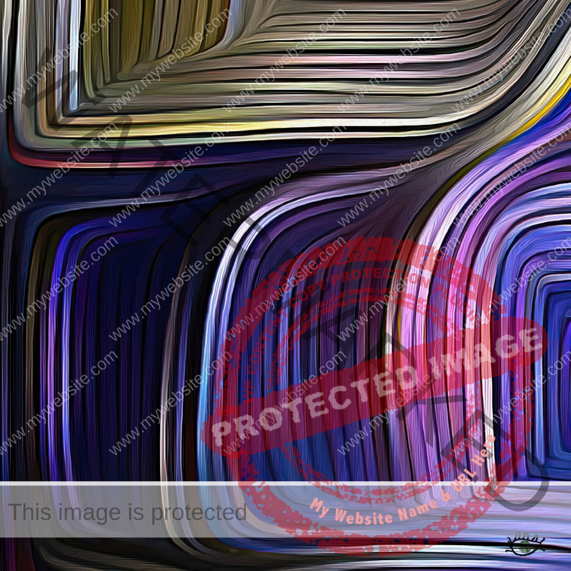 This serie is called SQUARED TEXTURED BLEU-VIOLET because it’s composed by 6 unique contemporary digital paintings with a 100 x 100 cm format. If you look closely this artwork, you will see that each one of the living lines that intertwine in this painting changes is color at least one time before ending.