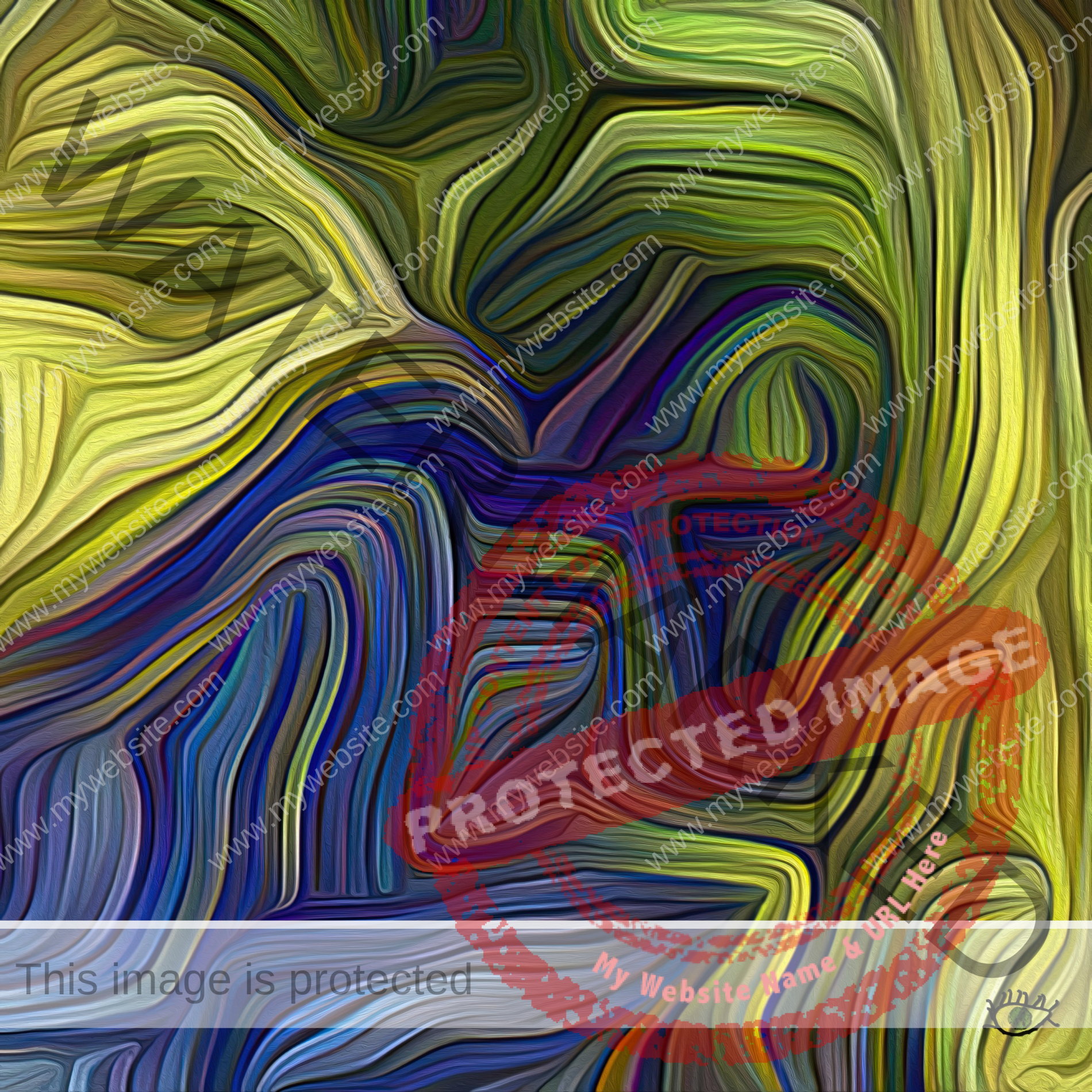 This serie is called SQUARED TEXTURED VERT-BLEU because it’s composed by 6 unique contemporary digital paintings with a 100 x 100 cm format. If you look closely this artwork, you will see that each one of the living lines that intertwine in this painting changes is color at least one time before ending.