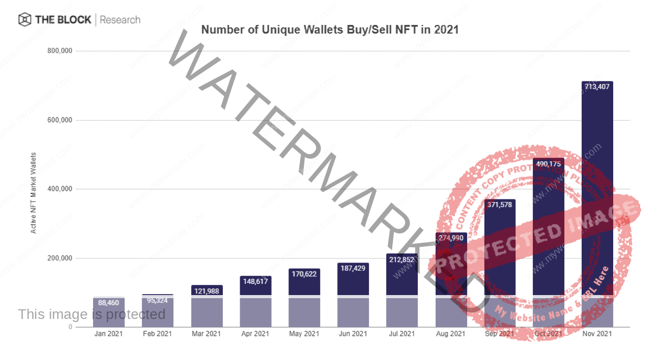 As we can see in this chart, the number of active digital wallets (needed to buy and sell NFTs) has increased almost tenfold between January and November 2021.