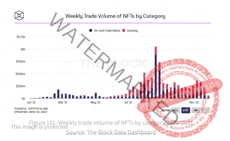- Total NFT volume traded in 2021 stood at $8.8 billion with 60% coming from trading Art and Collectibles and the remaining 40% from gaming NFTs.